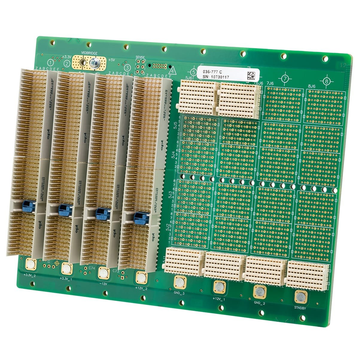 3U CompactPCI PlusIO Backplane 8-slot, PICMG 2.30 based hybrid Backplane, CompactPCI system slot right (PICMG 2.30), 4 CompactPCI slots 32 bit, V(I/O) +5V, 4 CompactPCI Serial slots PICMG 2.30 based slots, Rear I/O only in the peripheral slots