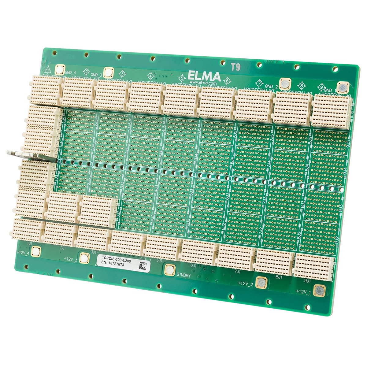 3U CompactPCI Serial Backplane with 9 CompactPCI S.0 slots, system slot left, without rear IO : 1x CompactPCI S.0 CPU slot, 8x CompactPCI S.0 peripheral slots, without connectors for Rear Transition Modules (RTMs), Ethernet full mesh