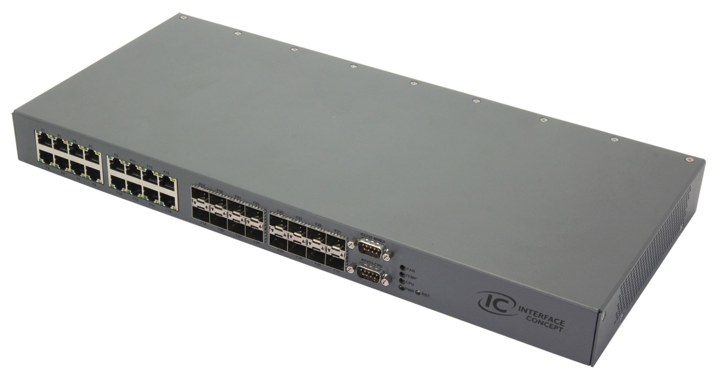 The IC-RS-BOXa is based on the Interface Concept ComEth4000e Layer 2/3 1/10 Gigabit Ethernet switch into a 19’’ rack mountable box. The IC-SR-BOXa is dedicated to industrial and military networking applications.